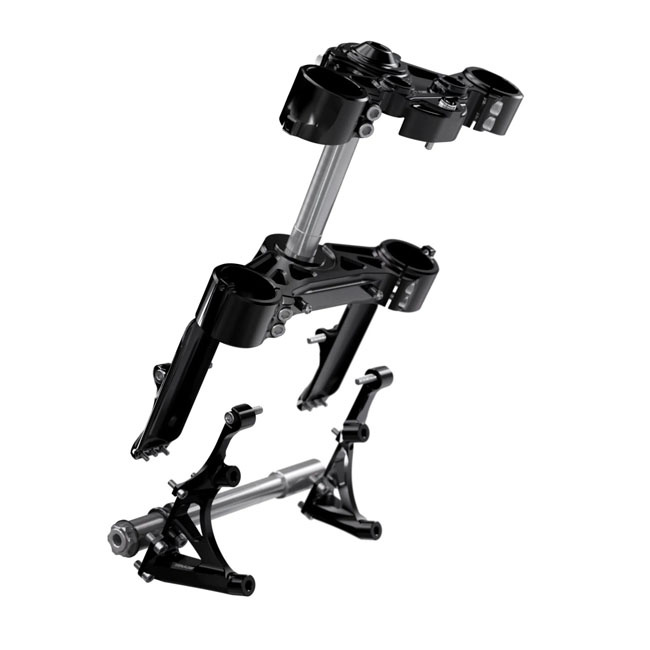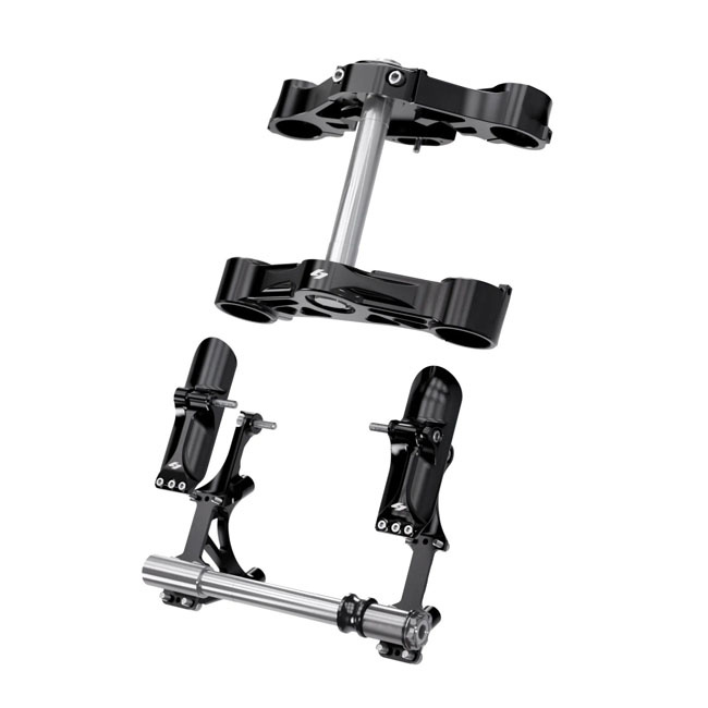 Met de Kraus KR8 Component Kit worden de standaard H-D triple trees ingeruild voor een prachtig ontworpen, high-performing setup die CNC gefreesd is uit massief 6061 billet aluminium.