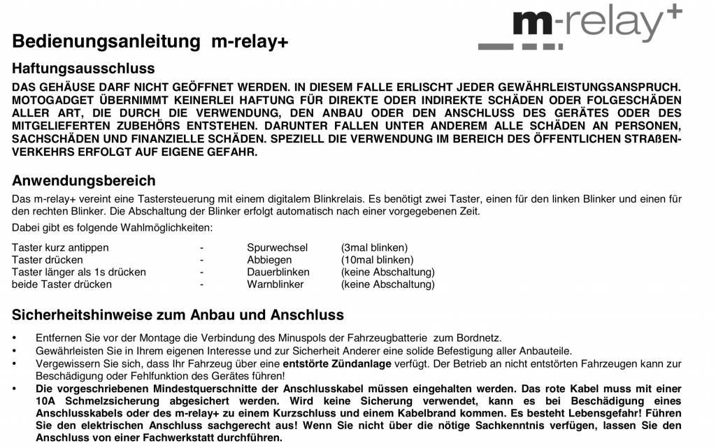 De mo.relay+ is belastingsonafhankelijk (1-100 W) en levert een constante knipperfrequentie aan vrijwel alle modellen led-, micro- of halogeenknipperlichten, evenals aan 10 of 21 W gloeilampen. De effectieve micro-elektronica zorgt voor directe, verliesvrije en helderdere verlichting.