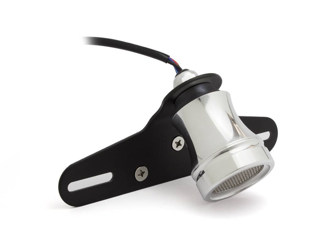 Polished Mesh Cafe Achterlicht met Kentekenplaathouder EN Kentekenverlichting. Stoer mesh lampje met remlicht. Leuk alternatief voor de razend populaire Atomic achterlichten.