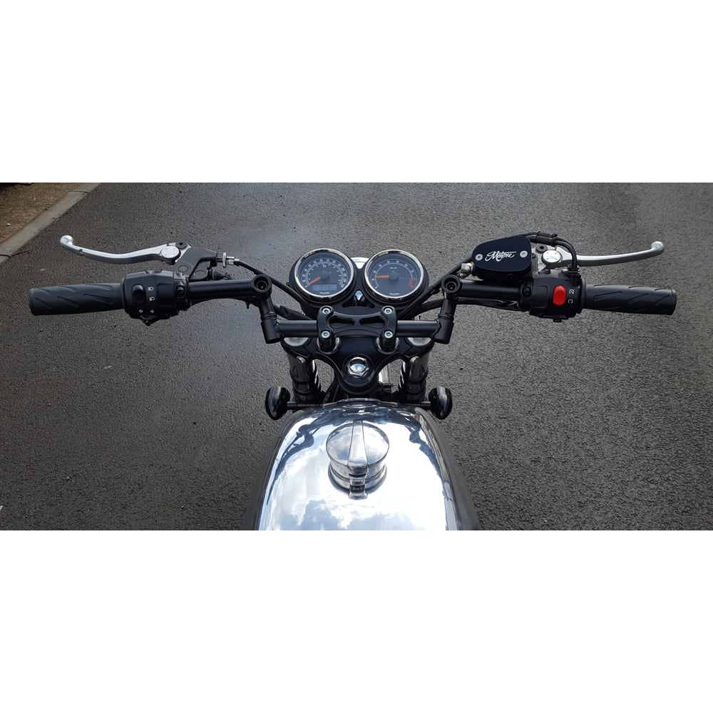 Billet schijfrem oliereservoir hoofdremcilinder dop met een modern logo, ontworpen om te passen op alle Hinckley Triumph modellen met deze stijl hoofdremcilinder dop.
