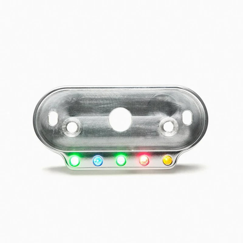 5 indicatielampjes en serieweerstanden zijn voorgeïnstalleerd. Het apparaat is vervaardigd uit massief aluminium en verkrijgbaar in geanodiseerde of gepolijste afwerking.