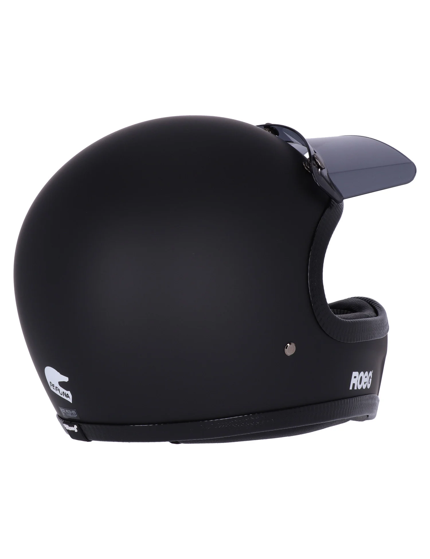 Avontuur, zonder goede reden. Het is wat de crew drijft, waar we van houden en waarom we de Peruna hebben gemaakt. Of je nu met vrienden de woestijn in trekt of eindelijk die Afrikaanse woestijntocht van je dromen maakt, je hebt een Peruna nodig. De ultieme integraalhelm voor op reis, waar de reis je ook brengt. De helm is gemaakt van 'RQ LIGHT' glasvezel met een multi-density EPS-voering en verkrijgbaar in twee ergonomische maten. Voorzien van een klassieke, verstelbare kinband met dubbele D-ring en microtech fleece vulling, geïntegreerde drukknopen voor vizier/schild in gunmetal grey, een comfortabele microtech fleece voering die afneembaar en wasbaar is, met premium geperforeerde leren details, ECE-R22.05-goedkeuring, RQ XXL retro-afwerking en een afneembare, donker getinte, doorschijnende klep. Apart verkrijgbare klep in verschillende kleuren om hem helemaal naar eigen wens te maken.