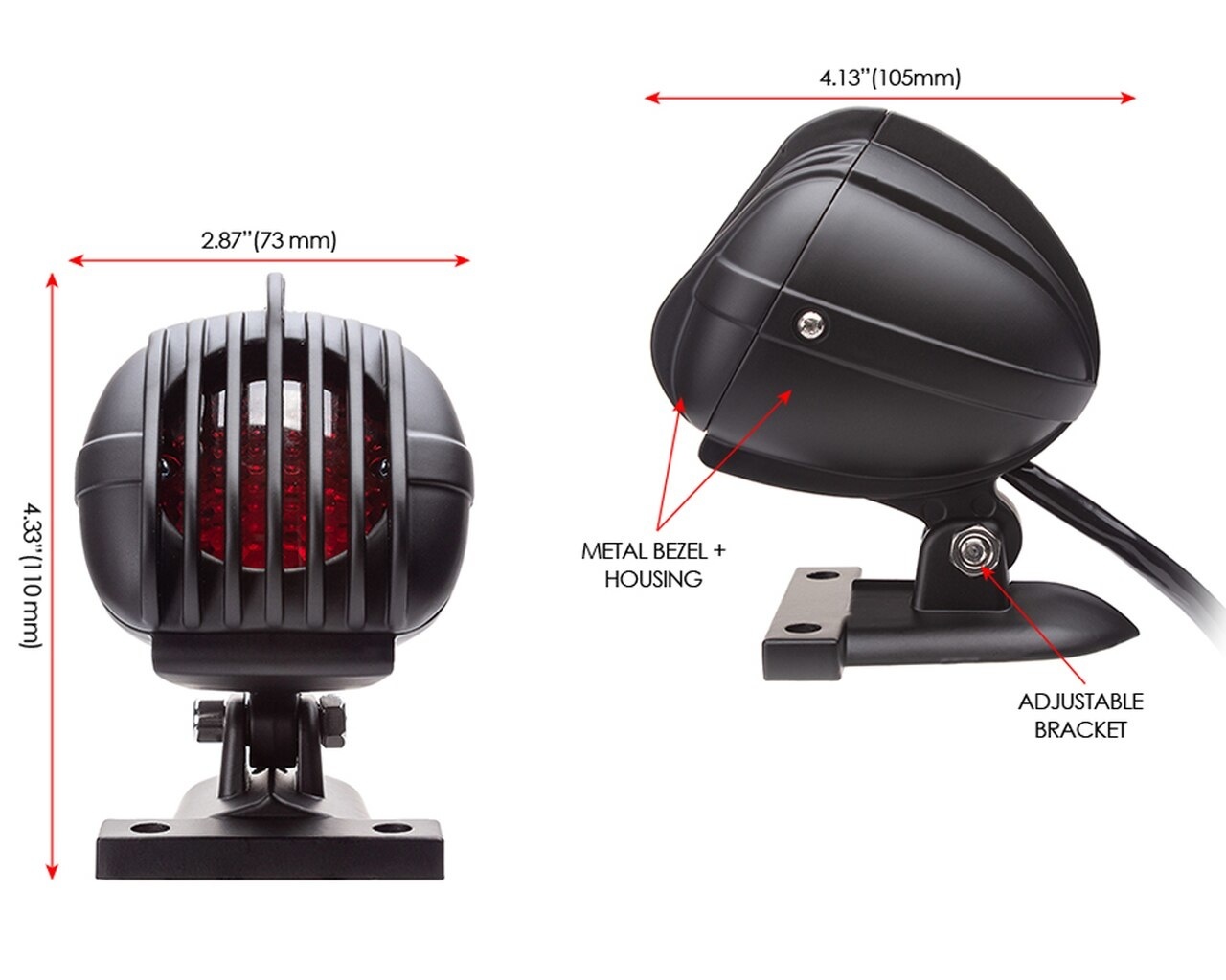 Prison Retro Grill LED Achterlicht Rood / Zwart. Zeer mooi lampje met een erg nette afwerking. Dit achterlicht is te verstellen in hoogte en staat mooi op zowel chop