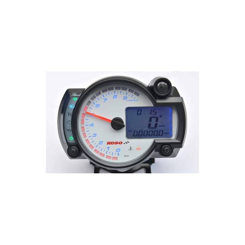 Topkwaliteit Koso snelheidsmeter / toerenteller RX2N 10.000 tpm van Koso, bekend om de betrouwbaarheid en nauwkeurigheid van hun instrumenten. Combinatie van digitale snelheidsmeter en analoge toerenteller.