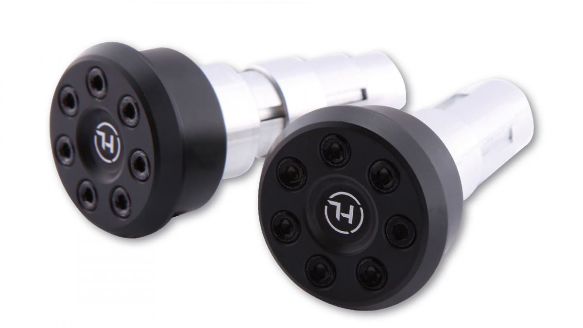 Highsider Stuurgewichten CONERO Type 2. De gewichten zijn van aluminium en worden geleverd met een adapter waarmee u de Highsider bar end spiegels met een montage diameter van 30mm kunt monteren.