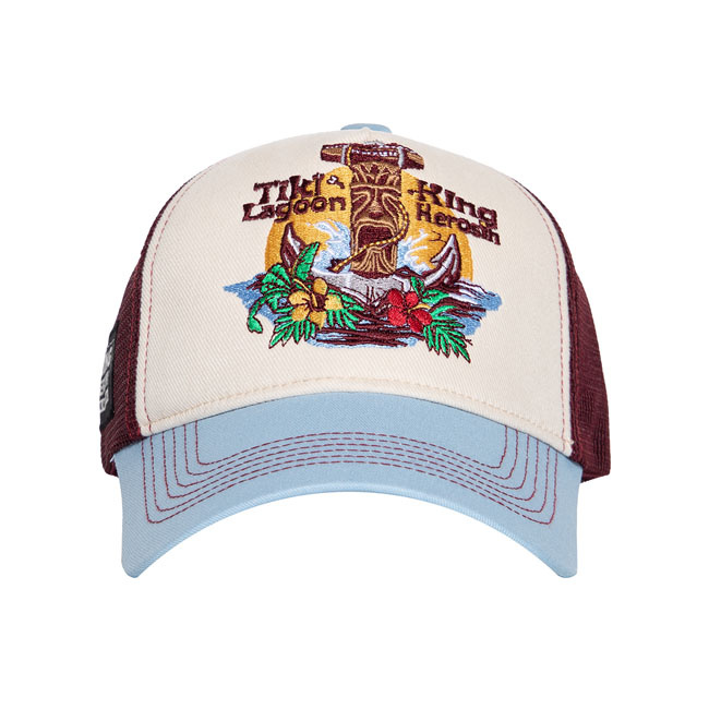 Verfijn je stijl met de King Kerosin Tiki Lagoon pet in gebroken wit/blauw. Deze pet brengt de sfeer van een tropisch paradijs in je look, met een verfrissend gebroken wit en blauw design dat de essentie van het eilandleven vastlegt.