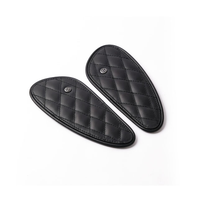 Voor motorfietsen met een beperkte tankpadruimte is de Trip Machine Diamond Mini Leather Tankpad ontworpen. De leren tankpadden zijn ontworpen om de esthetische aantrekkingskracht van je motorfiets te verbeteren. Ze zijn met de hand gemaakt van het kenmerkende Trip Machine crunch leder en zullen met de juiste zorg zeer lang meegaan. Om te garanderen dat de tankpads de lak van je motor niet beschadigen, gebruiken ze lijm van 3M industriële kwaliteit. Elk paar tankpads wordt meegeleverd.