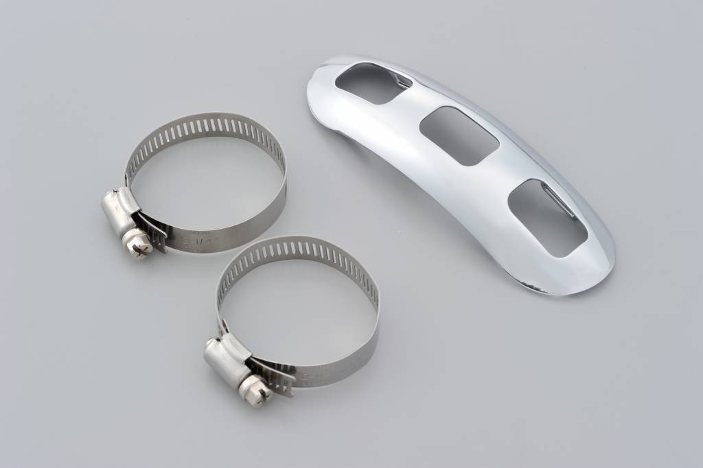Deze smalle uitlaatpijpbescherming voorkomt brandwonden veroorzaakt door de hitte van de uitlaatpijp. De uitlaatpijp komt grotendeels overeen met het uitlaatsysteem met een andere buitendiameter voor de klemmen. De buitendiameter van de uitlaatpijp is 33 tot 61 mm, dus hij kan op verschillende motorfietsen worden gebruikt, van minifietsen tot Harleys. Bij gebruik in combinatie met warmte-isolatiematerialen zorgt het ervoor dat er geen warmteverlies bij de uitlaat optreedt.
