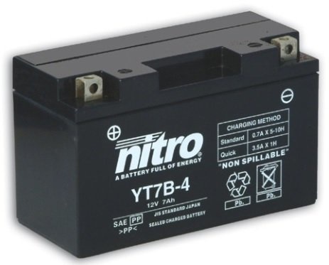 De nieuwste evolutie in batterijen zijn de Valve Regulated & Wet Charged batterijen. Dankzij zeer innovatieve technologie hebben deze verzegelde batterijen een sterkere startcapaciteit voor een kleiner batterijvolume. In principe gebruiken deze typen dezelfde gasrecombinatietechnologie met ontluchtingskleppen als de Maintenance Free batterijen, maar het belangrijkste verschil is dat deze batterijen verzegeld en al gevuld met zuur worden geleverd. Dankzij de AGM GEL-technologie (Absorbent Glass Matt) zijn deze batterijen ontworpen voor gebruik in elke positie. Model YT7B-4.